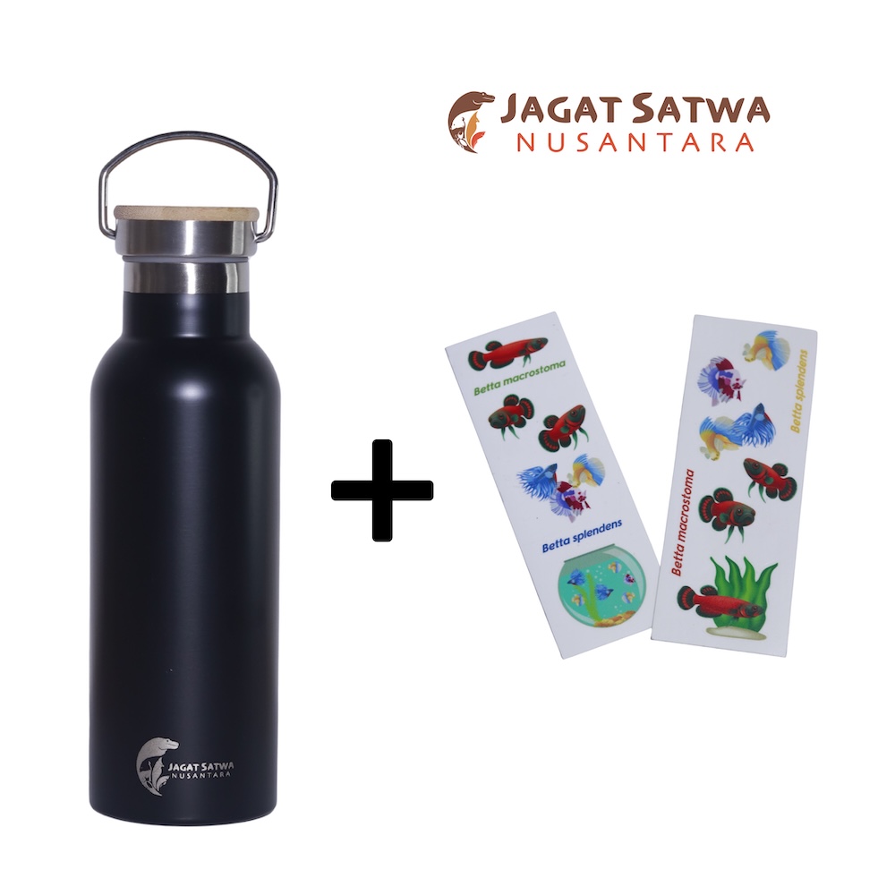 Tumbler Tutup Kayu Hitam Logo JSN + Sticker A6 “Aquarium Nusantara”